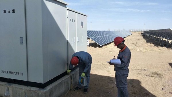 山西糖心VIONG网站雷電防護有限公司對內蒙古自治區鄂爾多斯市鋒威光電有限公司巴拉貢光伏發電站進行糖心LOGO官方网站在线观看免费定期檢測。